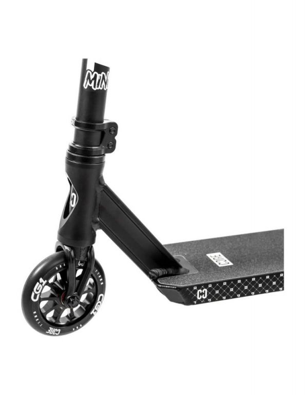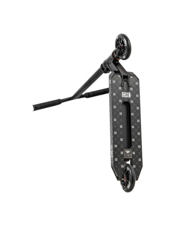 DescripciónCore CG1 Mini Scooter Freestyle – Primer paso seguro para aprender en el skateparkConstrucción del deck y materialesEl Core CG1 Mini Scooter Freestyle está diseñado para los riders más pequeños que quieren dar sus primeros pasos en el freestyle. Su deck de aluminio tratado térmicamente mide 5” de ancho por 17.5” de largo, ofreciendo una base estable pero compacta que facilita el control a usuarios jóvenes. Los dropouts angulados aumentan la durabilidad, mientras que el concave de 3° y el headtube de 83° mejoran la sensación de control en cada movimiento.Manillar y controlEl scooter monta un CORE CG1 bar con medidas de 470 mm de ancho y 520 mm de alto, adaptado a riders de menor estatura. Este tamaño lo convierte en una opción manejable para aprender maniobras como barspins y tailwhips con mayor seguridad. Los grips CORE Skinny Boy Premium TPR de 170 mm aportan comodidad y un agarre firme, ayudando a mantener el control durante sesiones largas en el skatepark.Ruedas y rodajeEl CG1 Mini equipa ruedas CORE CG1 de 110 mm x 24 mm y dureza 88A, que ofrecen una buena combinación de velocidad y agarre para riders principiantes. Con los rodamientos Premium ABEC 9, el rodaje es fluido y estable, lo que facilita la progresión en las primeras etapas del aprendizaje. Su fork de aluminio CORE SL con sistema IHC garantiza resistencia sin añadir peso extra, manteniendo el conjunto ligero y fácil de maniobrar.Estabilidad y extrasCon una altura total de 77 cm y un peso de solo 3.4 kg, este scooter es perfecto para riders que miden a partir de 127 cm. Incluye freno de nylon reforzado, griptape premium con recortes y un headset integrado con rodamientos sellados, lo que aporta suavidad en giros y confianza en cada truco. Certificado bajo la norma EN14619, asegura un uso seguro y fiable en skateparks.Estética y acabadosEl CG1 Mini mantiene la estética moderna de la gama Core, con un acabado en negro mate y detalles gráficos en la parte inferior del deck. También está disponible en Neo/Black, ofreciendo una opción más llamativa para los que buscan un estilo diferente.