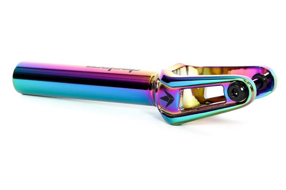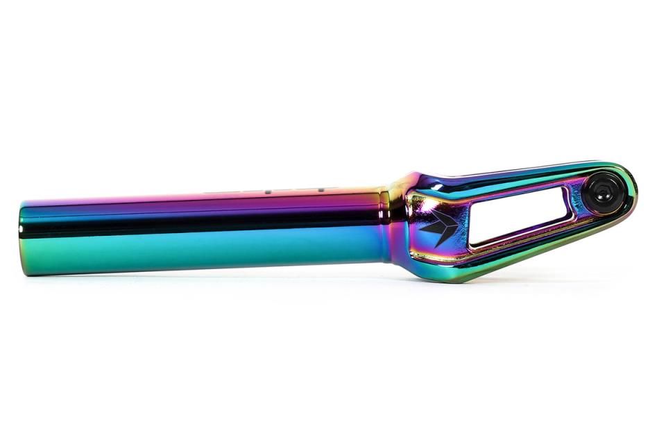 La horquilla BLUNT Declare V2 SCS con acabado en negro es el modelo elegido por los ciclistas que buscan un rendimiento de alto nivel y al mismo tiempo disponer de un equipo elegante y duradero. Fabricada en aluminio CNC 6063, esta horquilla garantiza una gran resistencia sin dejar de ser relativamente ligera, ideal para ciclistas que practican en entornos exigentes como el parque o la calle. Disponible en tres colores de moda (Negro, Oil Slick y Plata), permite a los conductores personalizar su scooter mientras se benefician de un rendimiento óptimo.Su sistema de compresión SCS permite una instalación sencilla y rápida, al tiempo que garantiza una mayor estabilidad y durabilidad. Con un cuidado diseño y un offset de 10 mm, la Declare V2 SCS está diseñada para ciclistas que buscan una horquilla a la vez estética y de altas prestaciones, capaz de soportar los impactos de los trucos más técnicos. Su compatibilidad con ruedas de hasta 125 mm de diámetro la convierte en una elección perfecta para ciclistas que buscan versatilidad y resistencia.Ya sea para un estilo urbano o para sesiones intensas en el parque, esta horquilla no te decepcionará. Forma parte de la gama de productos BLUNT, marca reconocida por su calidad e innovación en el mundo del scooter freestyle.