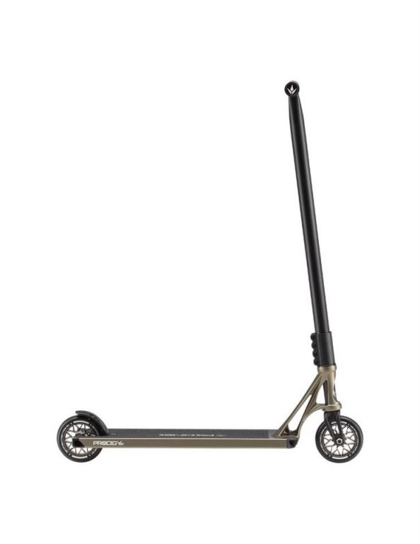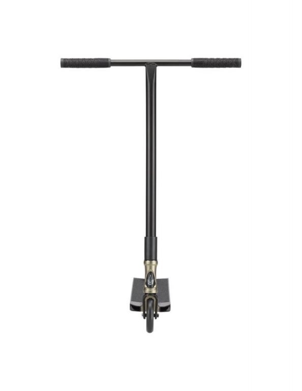 DescripciónBlunt Prodigy X One Street scooter freestyle street con deck 5.5” y ruedas 115 mmDeck ancho 140 mm: plataforma orientada a streetEl Blunt Prodigy X One Street utiliza un deck de 140 mm de ancho y 533 mm de largo, una geometría enfocada a street donde prima la estabilidad en recepciones y el control en grinds.El espacio útil de 385 mm facilita una colocación más natural de los pies, permitiendo mayor precisión en trucos técnicos. Los boxed ends aportan una estructura más sólida y mejor contacto en bordes y superficies.Ruedas 115 mm: mayor volumen de PU y comportamiento más progresivoLas ruedas de 115 mm x 24 mm incorporan un núcleo más compacto que permite aumentar la cantidad de poliuretano. Esto se traduce en una rodadura más estable y con mejor absorción en impactos y superficies irregulares.Este tipo de configuración encaja especialmente bien en uso street, donde las transiciones y recepciones son más exigentes.Sistema SCS: conjunto rígido y sin holgurasEl sistema de compresión SCS, combinado con la horquilla Declare V2 y el clamp de 4 tornillos, proporciona un conjunto firme y estable.La horquilla incorpora eje reforzado y sistema de fijación mejorado, pensado para soportar uso intensivo sin pérdida de ajuste.Manillar cromoly butted: distribución del material según esfuerzoEl manillar tipo T de 620 mm de alto y 600 mm de ancho está fabricado en cromoly con construcción butted, lo que implica variación en el grosor del tubo según la zona.Esto permite concentrar resistencia en puntos críticos y reducir peso en zonas menos exigidas, manteniendo un buen equilibrio estructural.Acabados disponiblesEl modelo se presenta en tres opciones diferenciadas:Black: negro mate con estética uniformeIvory: acabado metálico anodizado en tono claroOlive: acabado metálico anodizado en verde olivaLos acabados anodizados ofrecen mayor resistencia superficial frente al desgaste por uso.Componentes y detallesLos puños TPR V3 presentan mayor longitud y grosor, mejorando el agarre. La lija OS46 de carburo de silicio incrementa la tracción sobre el deck.El freno V2 de nylon reduce peso y mantiene una respuesta progresiva. El rediseño del headtube con refuerzo en la unión mejora la rigidez del conjunto.